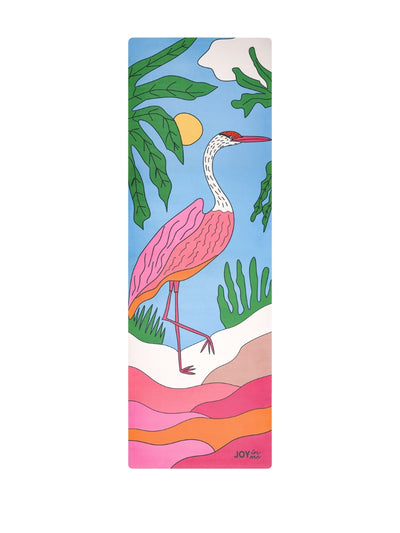 Druga grafika to wizualny zapis asany Krounchasana (pozycja czapli). Symbolizuje dążenie do lekkości, które wyrasta ze stabilnego, mocnego fundamentu – dokładnie tak, jak dumny ptak wpisany w tropikalny krajobraz. To przypomnienie, że prawdziwa siła pozwala nam unosić się wyżej.