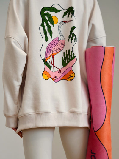 T-shirt i Bluza Oversize Bird of Calm: Otul się sztuką po praktyce lub noś ją jako manifest swojego stylu. Kremowy kolor i krój oversize tworzą aurę "spokojnego luksusu".