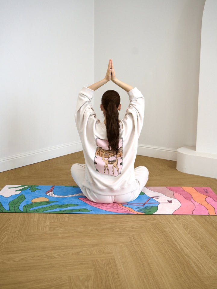 Sercem kolekcji są dwie unikalne grafiki stworzone na wyłączność przez Ewę Konstantynowicz Goss. Jej charakterystyczny styl, określany jako modern primitive, łączy wyrazisty, mocny kontur z inspiracjami kubizmem i sztuką archaiczną. To właśnie ta unikalna estetyka sprawia, że jej prace wyglądają zjawiskowo, gdy traktujemy matę czy bawełnianą bluzę jako galeryjne płótno. My ją uwielbiamy!