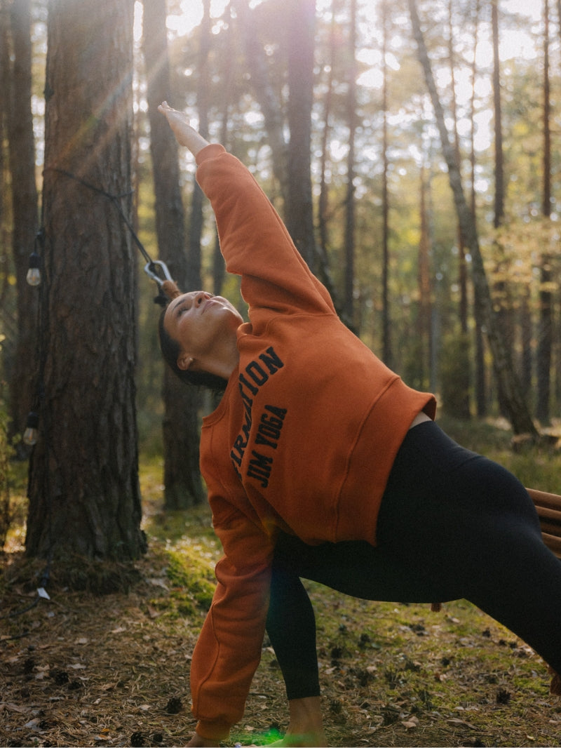 Podczas jogi czy pilatesu docenisz swobodę ruchu i oddychalność materiału – możesz wykonywać każdą pozycję bez obawy o krępujące szwy czy niekomfortowe dopasowanie. Oversize'owe bluzy z wycięciami na plecach pięknie eksponują plecy podczas asany, a szerokie spodnie dają pełną swobodę przy skrętach i wypadach.