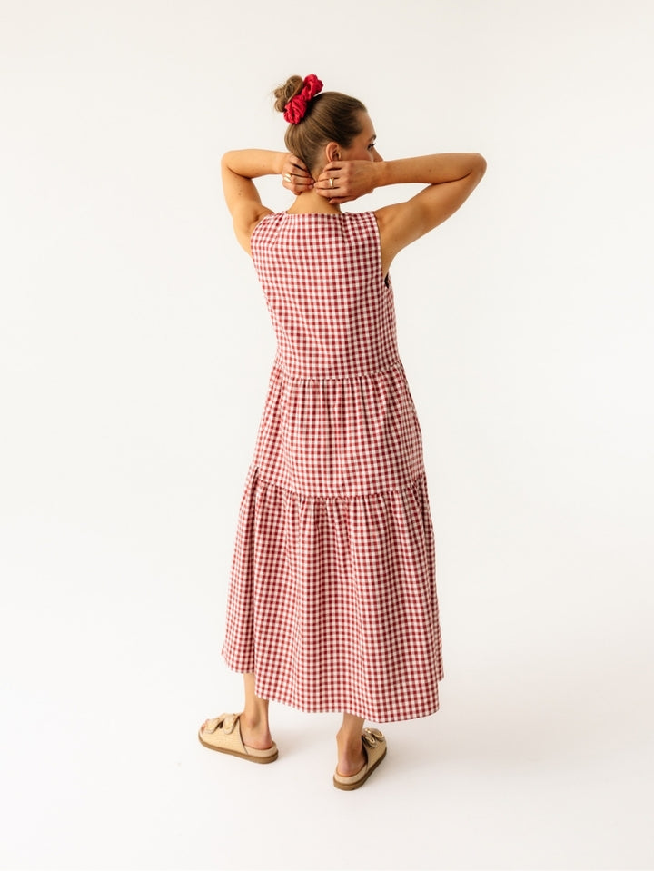 Postawiliśmy na luźny, swobodny fason o długości midi. Taka luźna sukienka na lato nie krępuje ruchów, pięknie pracuje na wietrze i zapewnia maksymalny komfort. Delikatne wiązanie przy dekolcie dodaje jej subtelnego uroku.