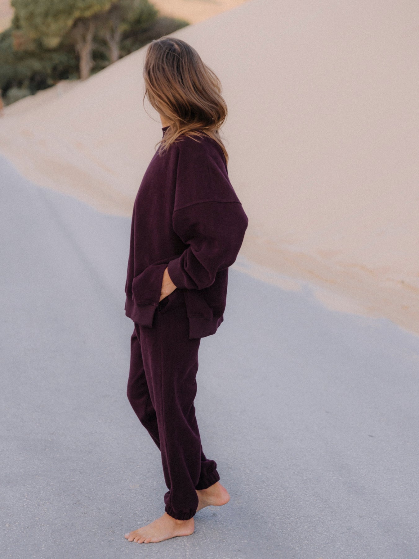 Bordowe, luźne bawełniane spodnie dresowe KIND - zestaw z bluzą oversize